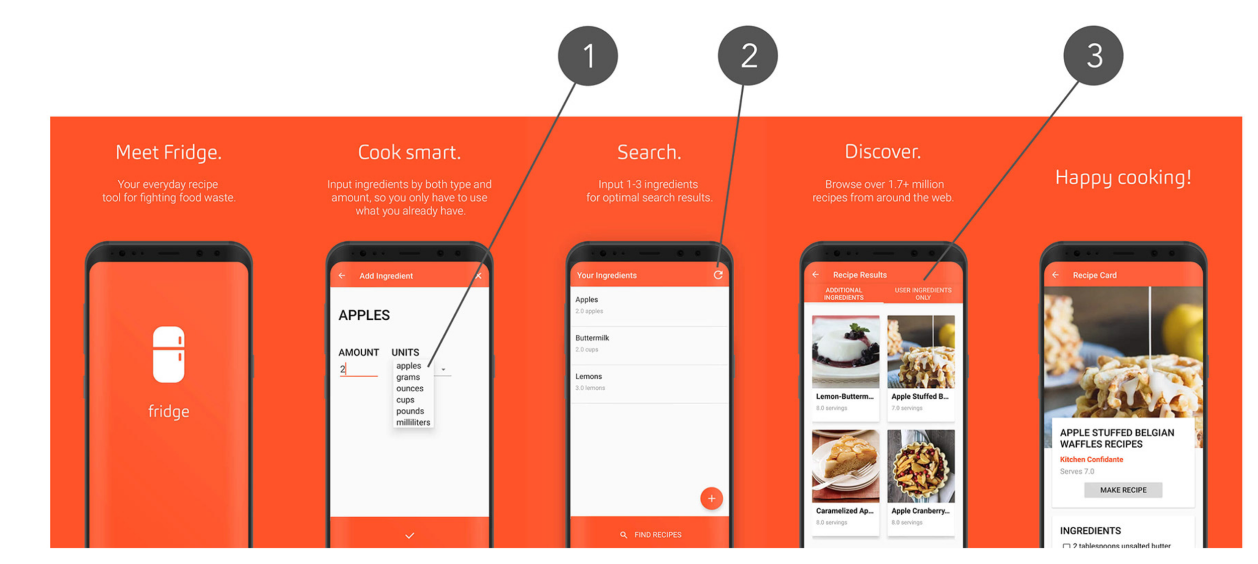 Android application on Google Play Store. Fridge was designed with a mission to reduce food waste and promote food sustainability by helping users find recipes that use refrigerator leftovers. Scroll down to learn more about my (literally) delicious journey!